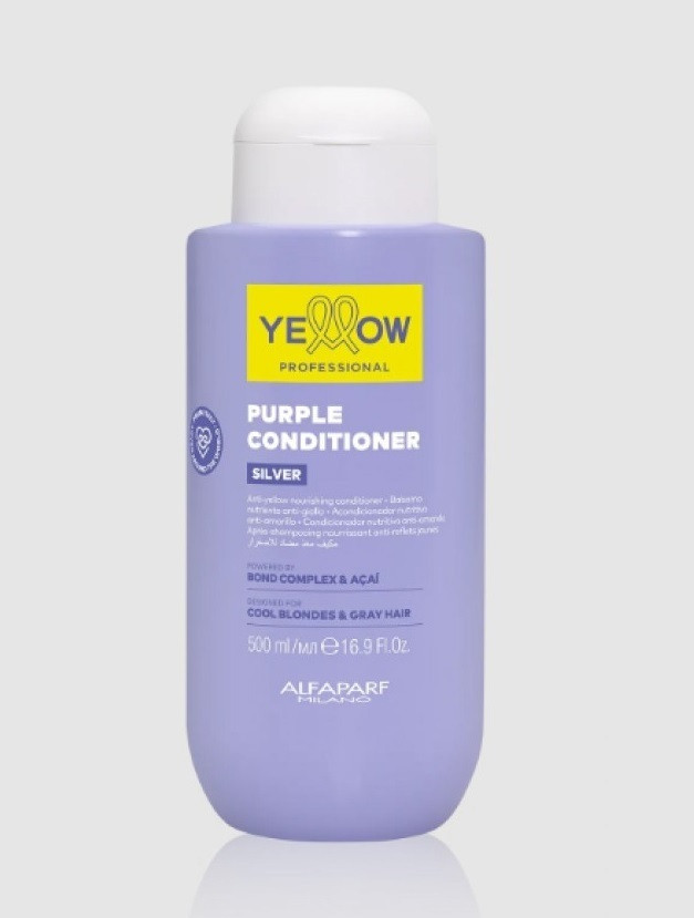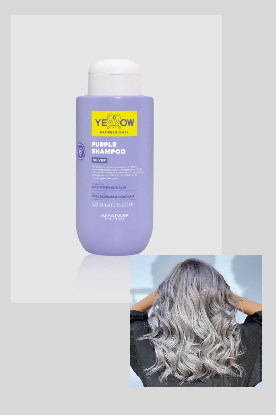 Шампоанът Yellow Silver Shampoo премахва нежеланите жълти оттенъци. Съдържа виолетови пигменти, които матират цвета и неутрализират жълто-оранжевите тонове. Подходящ е за бели, сиви, естествено руси и изсветлени коси или коси на руси кичури .