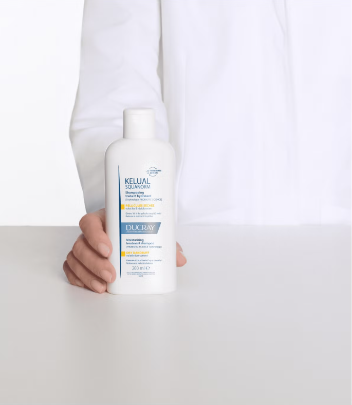 KELUAL SQUANORM Хидратиращ третиращ шампоан, специално разработен за сух пърхот, представлява първо поколение високоефективен шампоан против пърхот, създаден на базата на полезното и продължително действие на пробиотиците. Благодарение на PROBIOTIC-SCIENCE технологията, той нежно премахва до 100% от видимия пърхот още от 1та употреба*, като същевременно предотвратява повторната му поява със своето антирецидивно действие в продължение на 2 месеца**. Възстановяване на баланса, хидратацията и комфорта на скалпа само още от 1то измиване*.