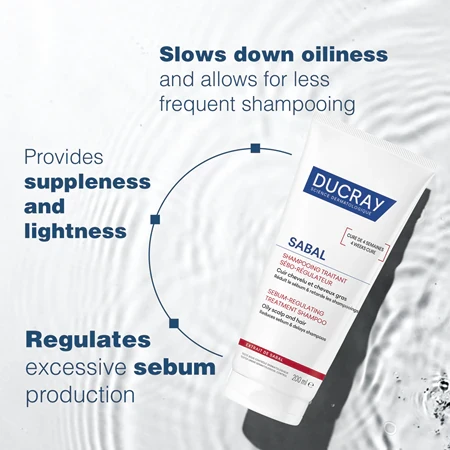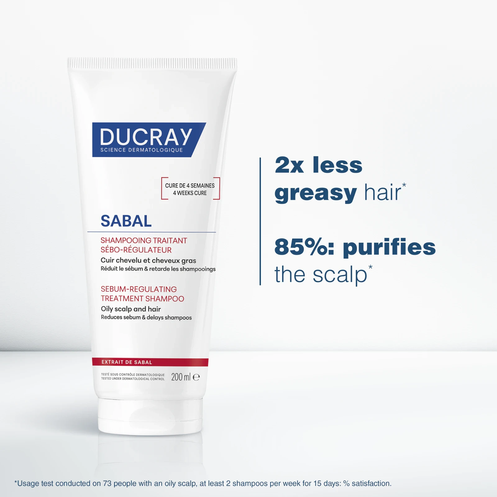 Ducray Sabal Sebum Redusing Treatment Shampoo e шампоан за мазна коса, който почиства косата и скалпа в дълбочина и редуцира прекаленото им омазняване. Шампоанът е изключително нежен и може да се използва толкова често колкото Ви е необходимо дори всеки ден, без да изсушава скалпа. Специалната формула съдържа уникална комбинация от активни съставки, които осигуряват ефективна и безвредна грижа за косата. Благодарение на активната съставка - екстракт от Sabal serrulata се намалява омазняването на косата и тя изглежда видимо по-жизнена и красива. Комбинацията от Екстракт от Sabal serrulata и Цинков салицилат регулира прекомерната секрецията на себум, като по този начин елиминира основната причина за омазняване. Ducray Sabal Sebum третиращ шампоан почиства косата и скалпа и дава усещане за свежест и комфорт. Сабал шампоан съдържа мека измиваща основа, която прави шампоана подходящ дори при чувствителен скалп. Без парабени.