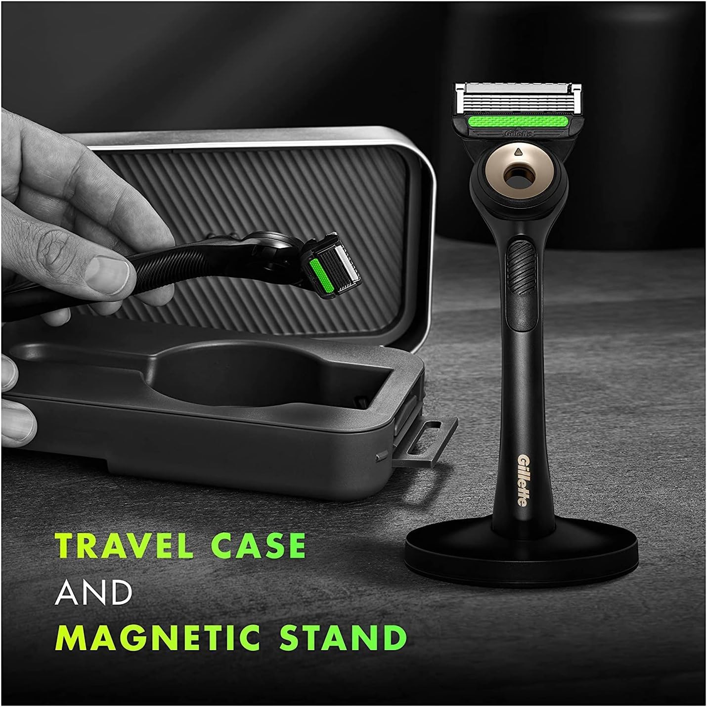 Самобръсначката Gillette Labs Champion Gold Edition се предлага със специална дръжка с ексфолиращ елемент, както и ножче с пет остриета за по гладко бръснене. Не само това, но има и калъф за пътуване, който можете да използвате, за да носите всичко необходимо, когато сте далеч, или просто за да сте сигурни, че самобръсначката ви Gillette Labs е защитена, когато е поставена в шкаф за баня за съхранение. С отличителен външен вид и самобръсначка, която помага за ексфолирането на кожата ви, докато се бръснете, ще се чувствате като шампион, наслаждавайки се не само на гладко бръснене, но и на по-бързо и по-малко досадно бръснене всеки път.