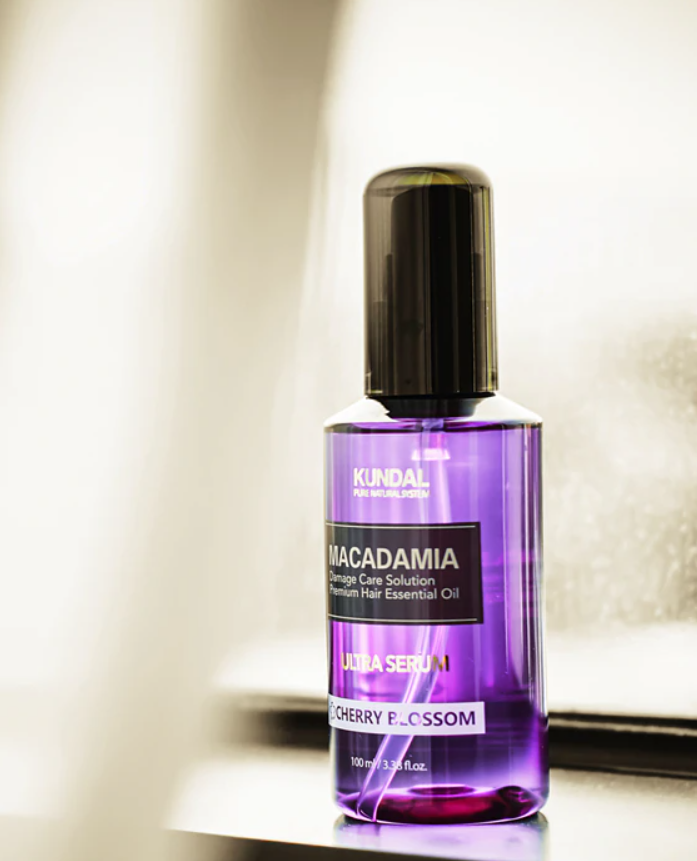 Серумът за коса Kundal Macadamia Ultra Serum Cherry Blossom е с високо съдържание на подхранващи съставки, които придават еластичност на косата и я хидратират в дълбочина. Прави косата кадифено мека, по-здрава и блестяща, като оставя фино покритие. Не съдържа вода и алкохол, а само подхранващи съставки. Не само подпомага за хидратацията на косъма, но и оставя приятен дълготраен аромат след употреба.