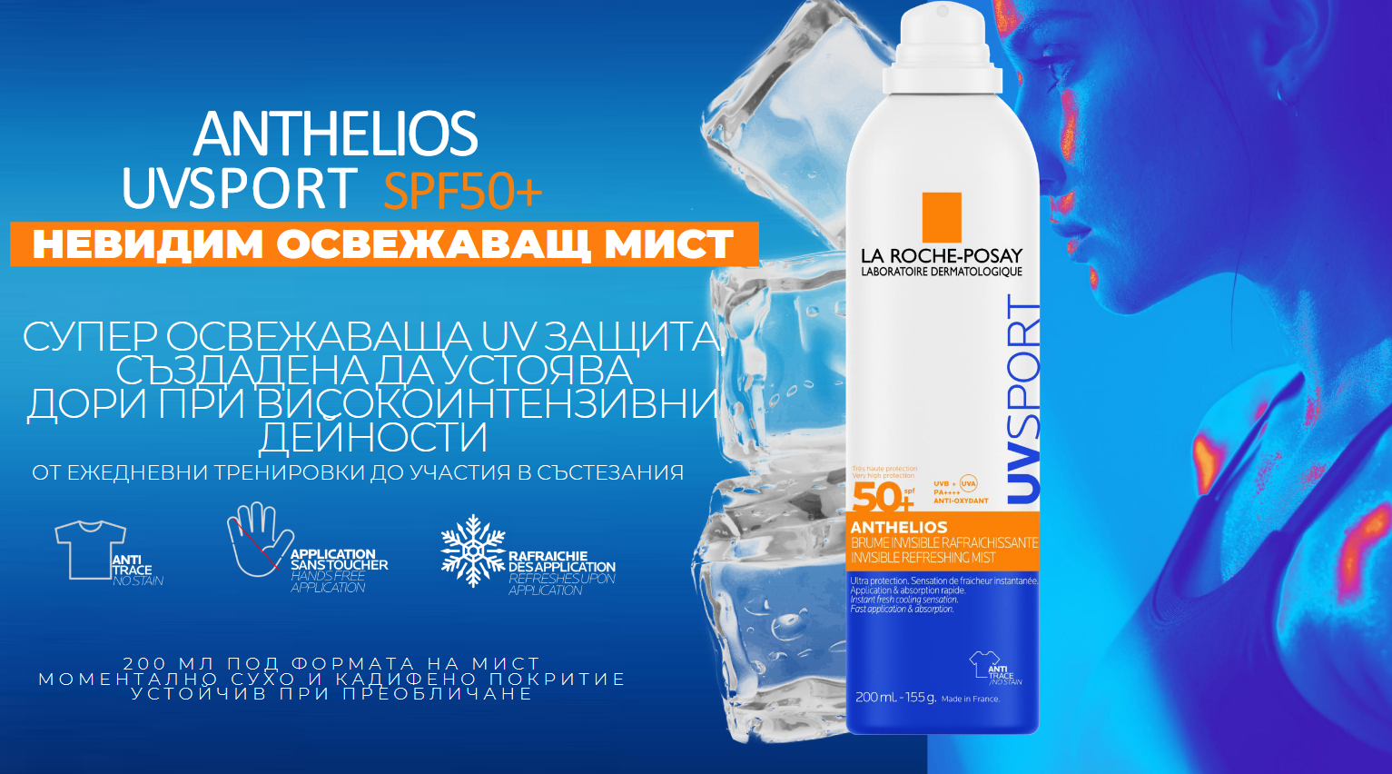Предимства на La Roche-Posay Anthelios UV Sport Invisible Refreshing Mist SPF50+: