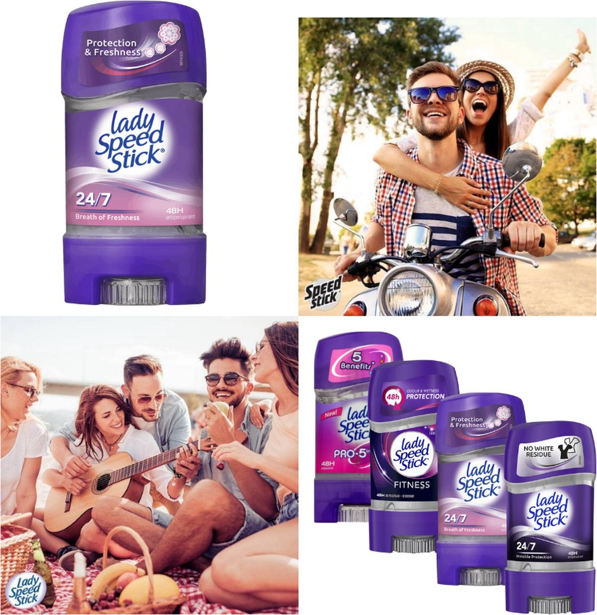 Lady Speed Stick Invisible Deo Gel е предпазващ дрехите от бели и жълти петна, предназначен да осигури 48 часова защита против изпотяване и неприятни миризми. Део стикът е под формата на гел, който деликатно попива в кожата и не оставя следи по дрехите. Иновативната му формула е богата на ценни съставки, които са известни с подхранващите си свойства, а нежният аромат придава свежест и лекота. Употребата на део стика на Lady Speed Stick гарантира надеждна грижа за приятни и сухи подмишници. Продуктът e направeн така, чe да нe ocтавя пeтна пo дрeхите и е с дерматологично доказана съвместимост с кожата.