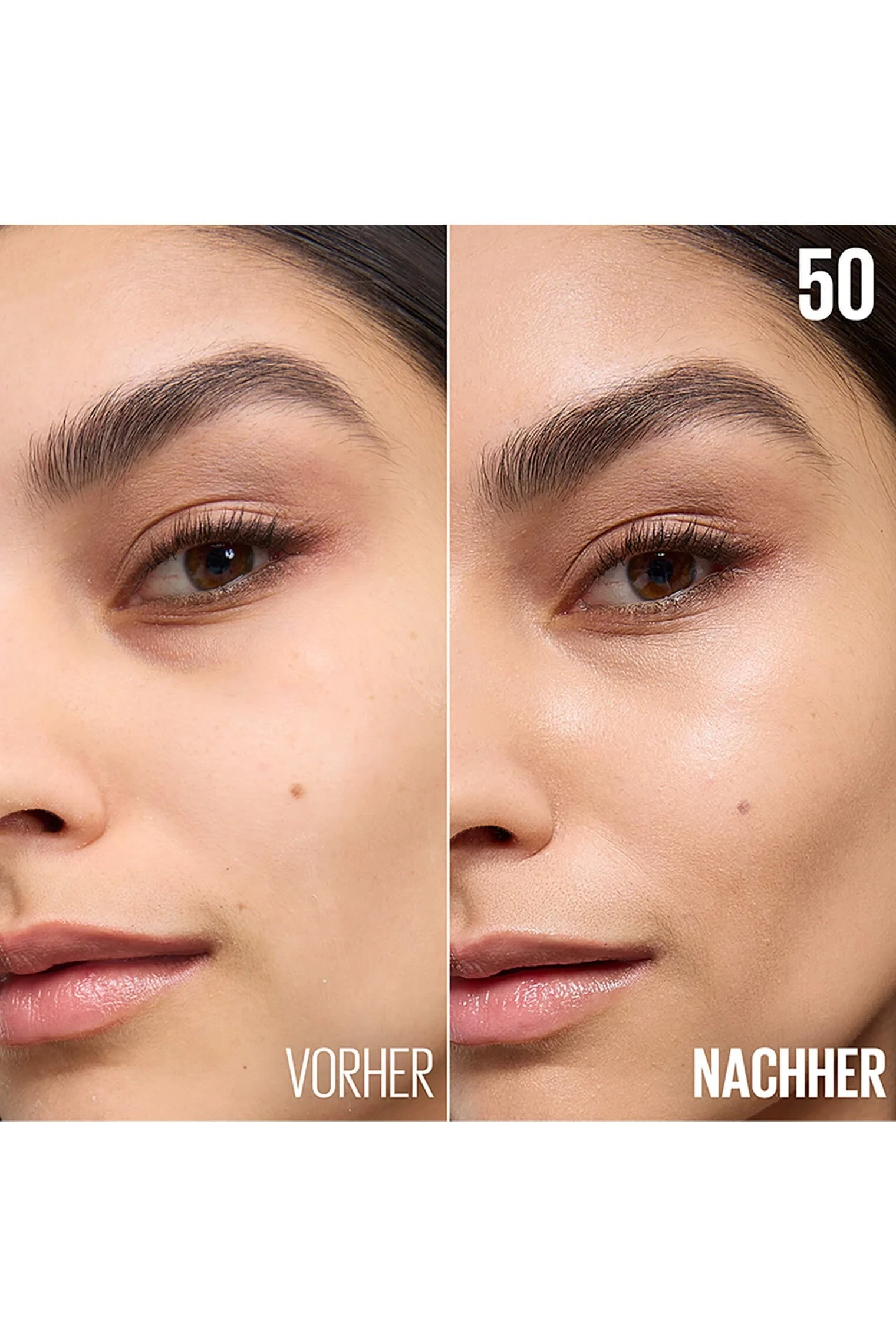 BB кремът Fit Me Nude на Maybelline New York осигурява незабавно и дълготрайно подобрение на тена ви. Този BB крем, който усъвършенства кожата, ви дава свеж и сияен блясък и, благодарение на формулата си с 90% подхранващи съставки, осигурява 24-часова хидратация. В същото време, вграденият му SPF 50 предлага висока защита срещу въздействието на UV лъчението. Освен това е приятно лек върху кожата и осигурява безупречно носене през целия ден. Нюансът на BB крема се адаптира към тена на кожата ви за леко и естествено изглеждащо покритие