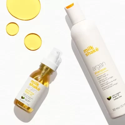 Argan Shampoo е шампоан с арганово масло за всеки тип коса. Почиства деликатно и хидратира в дълбочина. Подхранва интензивно и поддържа оптимални нива на влага в косъма. Не утежнява. Придава блясък и жизненост на косата. Елиминира фриз-ефекта. Предпазва цвета от избледняване. Формулиран е с арганово масло, хидролизиран оризов протеин и хидролизиран пшеничен протеин. Подходящ за всеки тип и текстура коса.