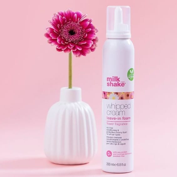 Milk_Shake Flower Whipped Cream е сметана за коса, която прави косата бляскава, жива и лесна за разресване. Чрез включените в състава си екстракт от моринга и соев протеин, той подхранва в дълбочина, улеснява разплитането и защитава от външни въздействия.