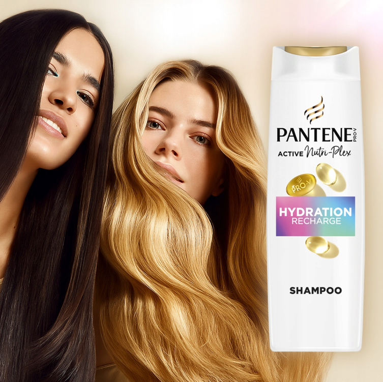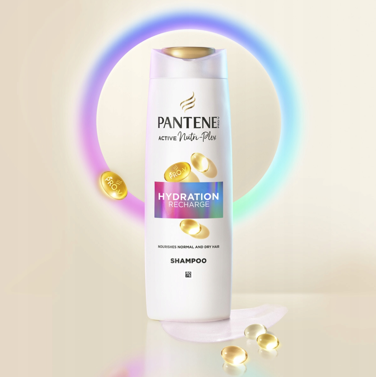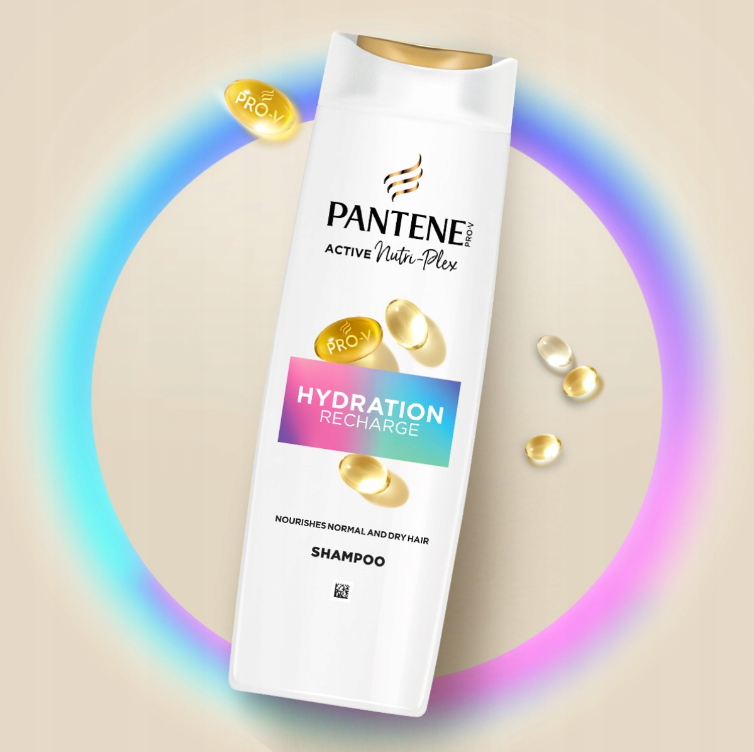 Открийте шампоана Pantene Hydration Recharge, перфектният източник на подхранване и защита за вашата коса. Нежната му формула с PRO-V и иновативната технология ACTIVE NUTRI-PLEX почиства косата, като същевременно я насища с хидратиращи хранителни вещества. Използван с нашия балсам без отмиване, той мигновено трансформира външния вид на сухата коса, оставяйки я мека, гладка и блестяща, като същевременно помага за защита на връзките между косъма.