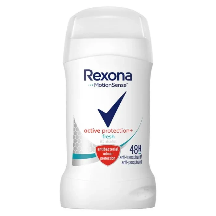 Rexona Motionsense Active Protection Anti-Perspirant 48h представлява део стик против изпотяване, предназначен за ежедневна употреба, който предпазва 48 часа от изпотяване и неприятни миризми. Иновативната му формула обогатена с ценни съставки предотвратява развитието на бактерии и хидратира кожата като ѝ осигурява оптимална защита. Употребата на део стика на Rexona гарантира надеждна грижа за приятни и сухи подмишници. Продуктът е с дерматологично доказана съвместимост с кожата.