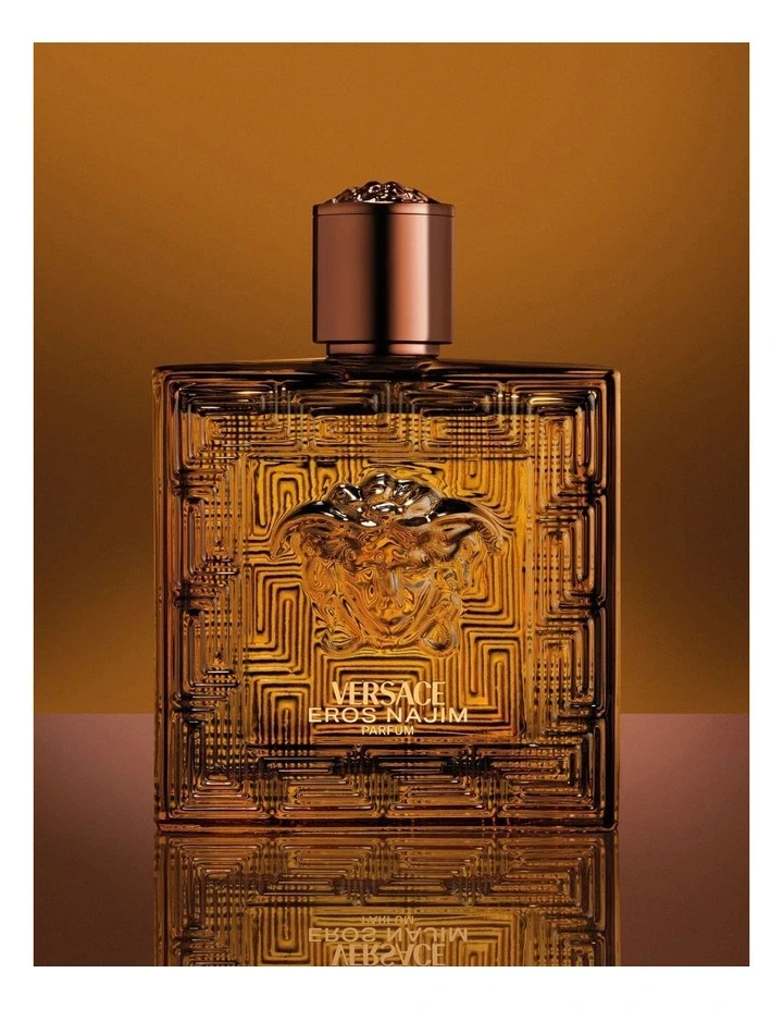Versace Eros Najim започва с жизнерадостен взрив от ярко жълта мандарина, шафран , кардамон и градински чай ,които се съчетават, за да създадат експлозия от нотки. Сърцето на Versace Eros Najim разкрива хармонична смесица от дървесни нотки. Уд и кедър се извисяват нагоре, придавайки величие и структура. След това навлиза карамел, омекотяващ интензивността на дървесните нотки и създаващ привлекателен баланс между сила и деликатност. В основата, пачули и ветивер, с дълбокия си и интензивен характер, придават на аромата луксозна елегантност. Тамянът добавя мистичен и интригуващ щрих, а съблазнителната прегръдка на боб тонка ви привлича. Najim за да блестиш като звезда .