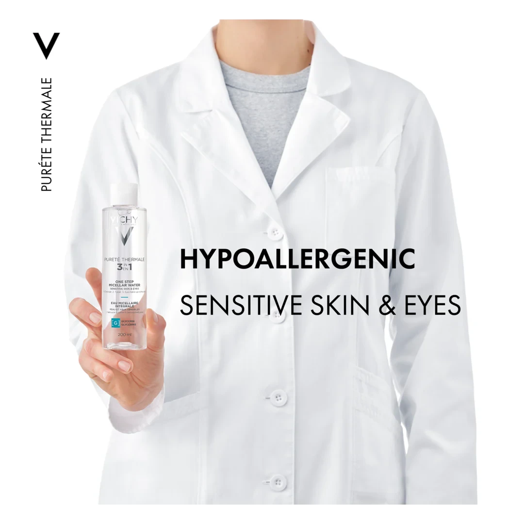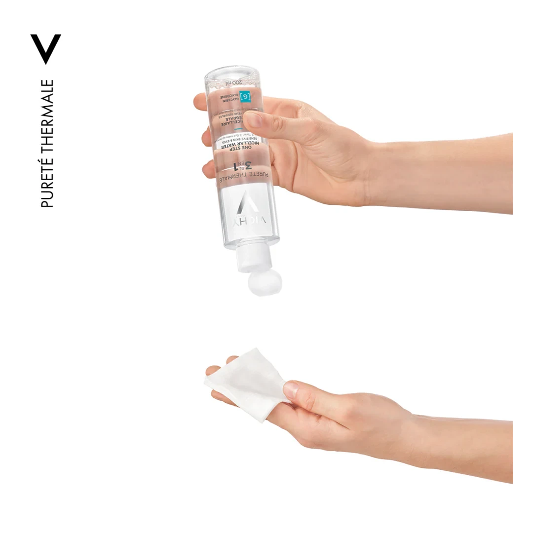 Почистването на кожа е изключително важен процес, който трябва да се извършва с качествени, деликатни продукти с успокояващи свойства.Продуктът е почистваща вода, успокояващ тоник и средство за премахване на грим от очите в един продукт. Иновативната формула съдържа любимата съставка на чувствителната кожа- екстракт от роза и термална вода Vichy, която предотвратява раздразнението, като оставя лицето копринено гладко и добре овлажнено. Козметиката е дерматологично тествана, не съдържа алкохол или сапун, което я прави безопасена дори за свръхчувствителен епидермис.