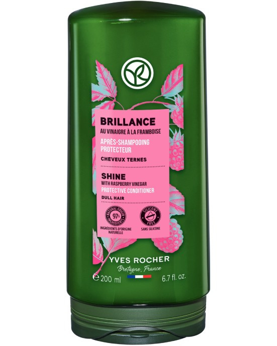 Yves Rocher Brillance ви предлагат балсам, специално разработен за нуждите на боядисаната и загубила блясъка си коса. Той предпазва цвета от избледняване и подхранва краищата в дълбочина. Балсамът Yves Rocher улеснява разресването и възвръща блясъка. Леката текстура се нанася с лекота и притежава деликатен аромат. След употреба, косата е мека, гладка и блестяща. Балсамът Yves Rocher съдържа 97% съставки от естествен произход*. Тя е обогатена с оцет от малина, който неутрализира съдържащия се във водата варовик. Освен това той придава копринена мекота и сияен блясък на косата. Вложено е масло от макадамия, което заздравява и подхранва косата. Добавен е и екстракт от невен, който укрепва и изглажда влакната на косъма**.